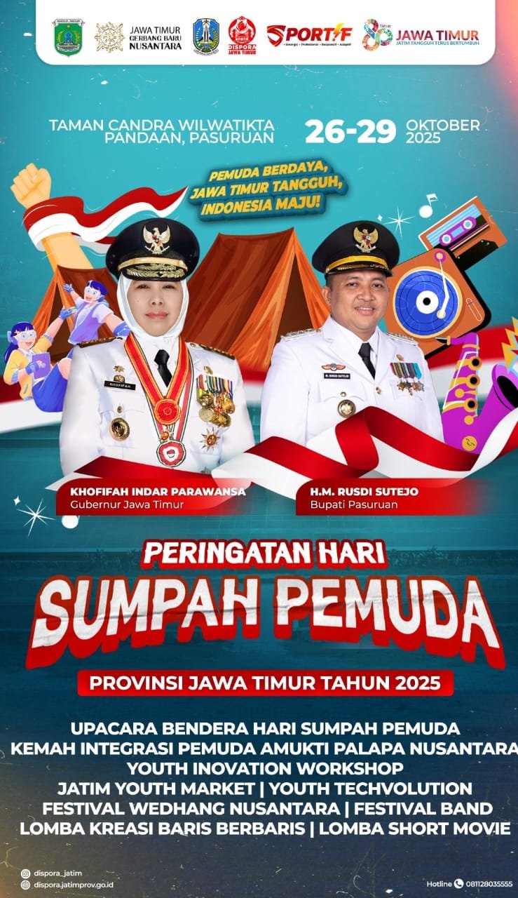 Ayo Meriahkan Peringatan Hari Sumpah Pemuda 2025! 🇮🇩 Hai Pemuda Jawa Timur! Saatnya tunjukkan semangat dan kreativitasmu dalam Peringatan Hari Sumpah Pemuda Provinsi Jawa Timur Tahun 2025 dengan tema:🔥 “Pemuda Berdaya, Jawa Timur Tangguh, Indonesia Maju!” 🔥 📅 Tanggal: 26–29…